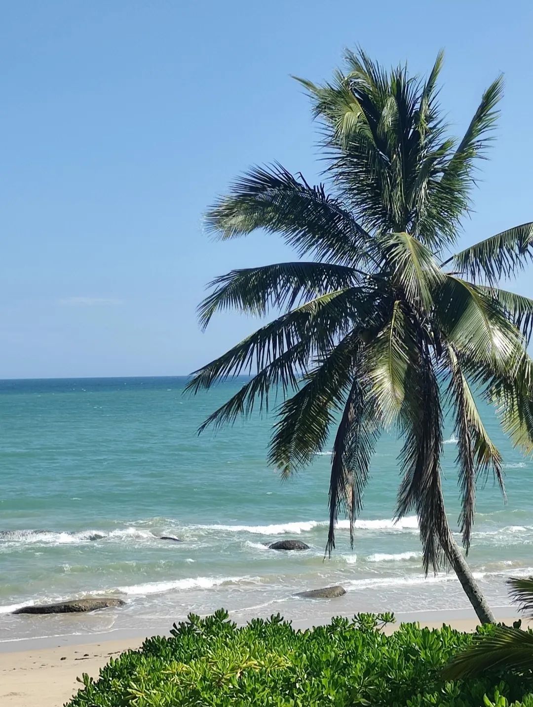 碧海蓝天椰影长,