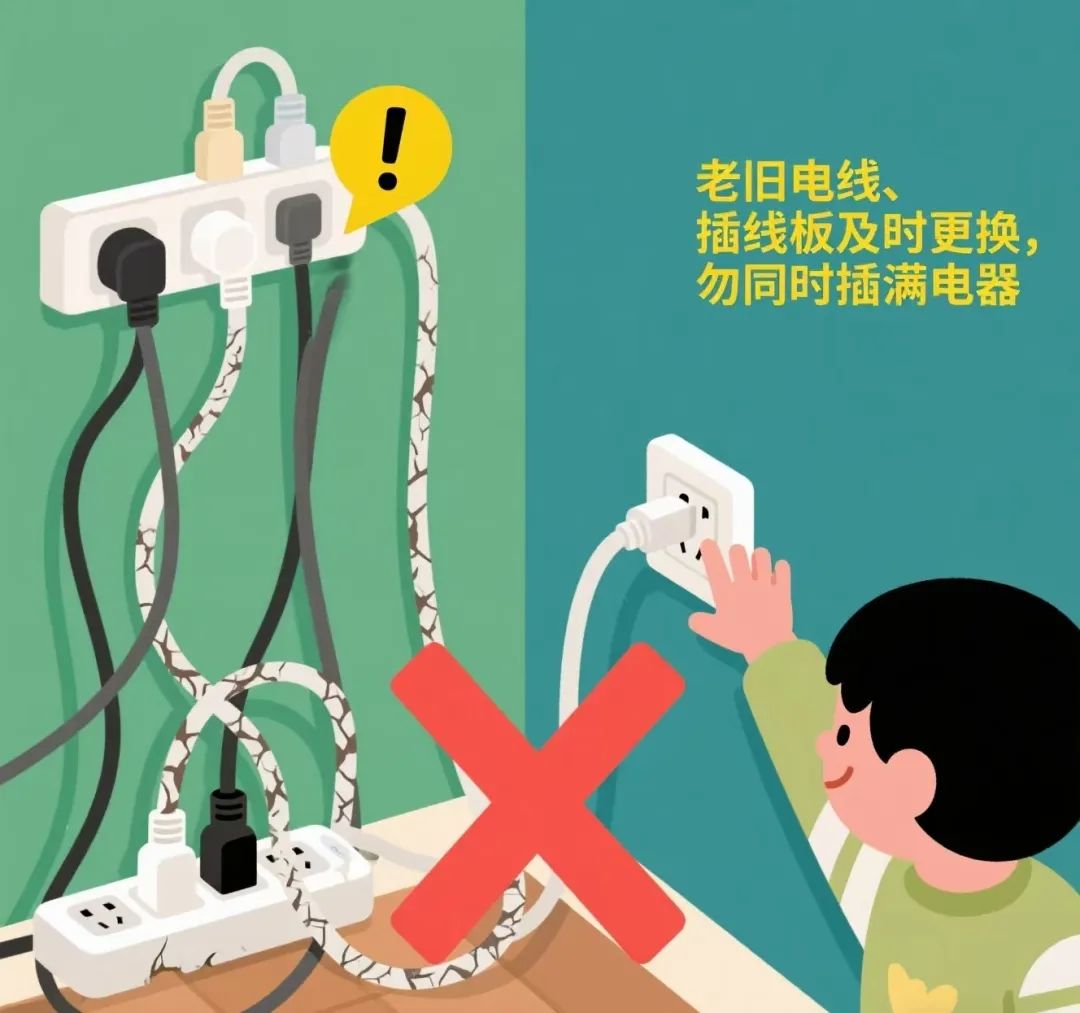 3.给家长提个醒:老旧的电线、插线板要及时更换,别为了“方便”在一个插头上同时插满电器;楼道里的消防通道别被杂物堵住,这是整栋楼的“生命通道”。