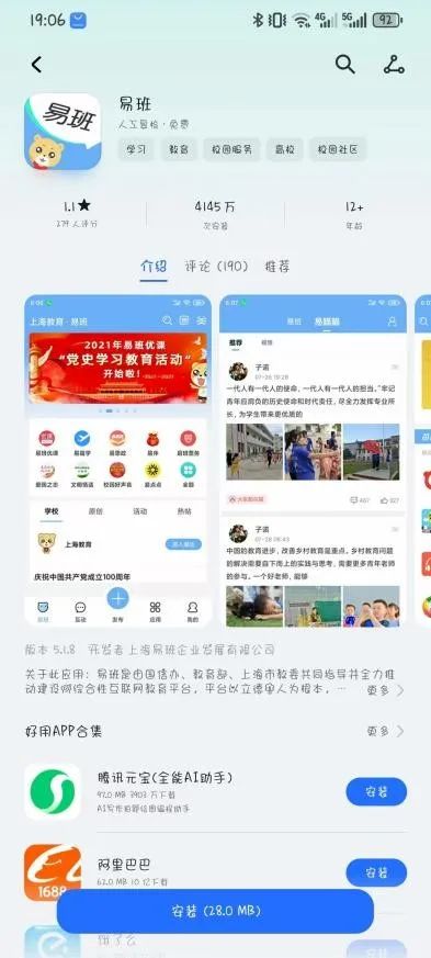 如何下载“易班app”?1.安卓用户:打开手机应用商店,在搜索框中输入“易班”点击“下载”。