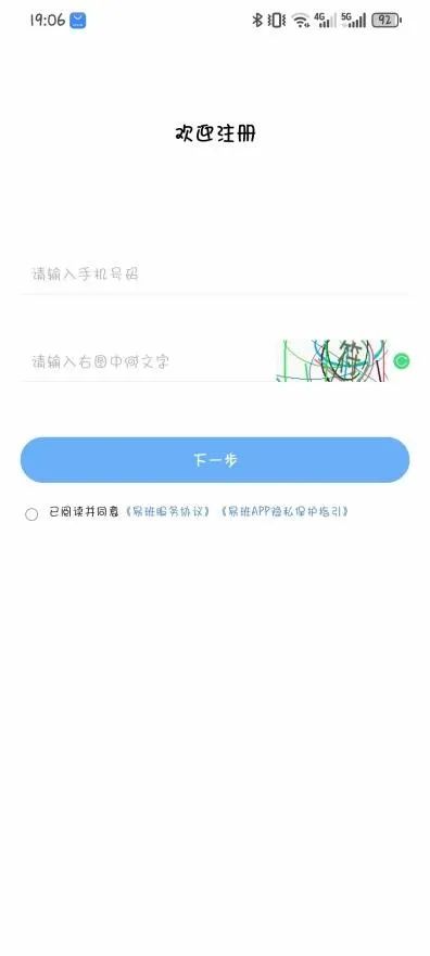 步骤二:点击上方注册,使用手机号码注册后点击下一步。