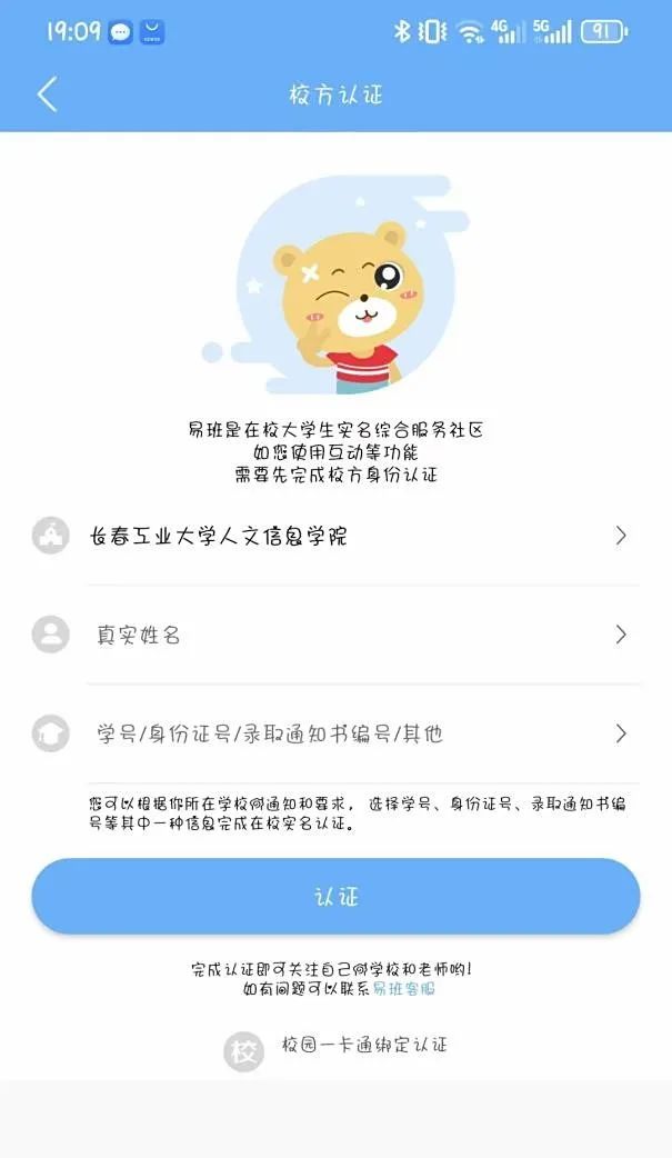 步骤四:学校为长春工业大学人文信息学院,认证方式为学号认证,填写完成后点击“认证”即可。