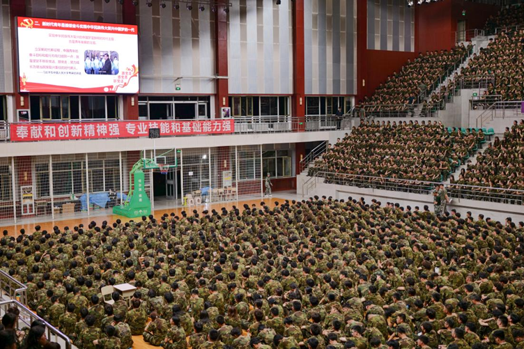 张建华与现场同学们共同回顾了纪念中国人民抗日战争暨世界反法西斯战争胜利80周年大会,指出盛大的阅兵式带来的不仅是震撼,更是发自内心的骄傲和自豪。他从一百年前新青年如何致力探寻民族复兴的前途,到一百年来青年始终是实现民族复兴的先锋力量,阐明了中国共产党始终对青年寄予的厚望以及对青年的关怀。他希望新生们能以我校优秀毕业学生为榜样,确定理想目标,珍惜大学时光,养成良好的学习习惯,勇于拼搏,将个人成长融入集体使命,以优异的成绩书写青春华章。