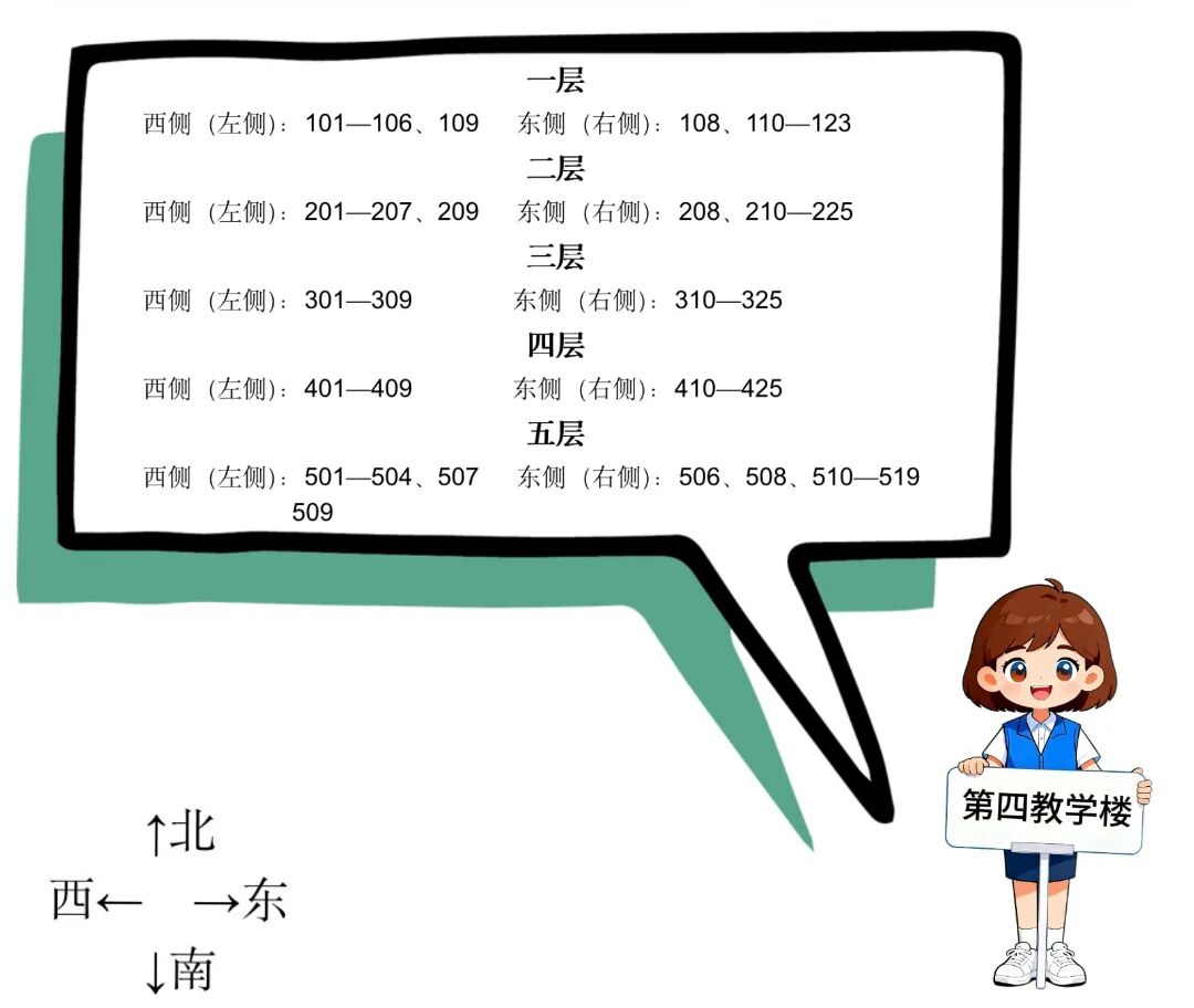 第四教学楼呈L型,东侧正对南校区,西侧正对红梅街。