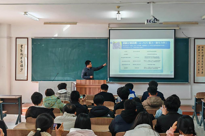 此次宣讲会由大学生资助中心的娄旸老师主讲。通过结合学生实际需求,娄旸老师详细解读了国家生源地助学贷款的申请条件、办理流程、还款方式以及相关优惠政策。通过实际案例分析,帮助同学们更好地理解最新政策,并针对大家普遍关心的贷款额度、利息计算等问题进行了现场解答。同时,宣讲会还设置了互动环节,让同学们能够提出自己的疑问,确保每位参与者都能充分掌握政策要点。