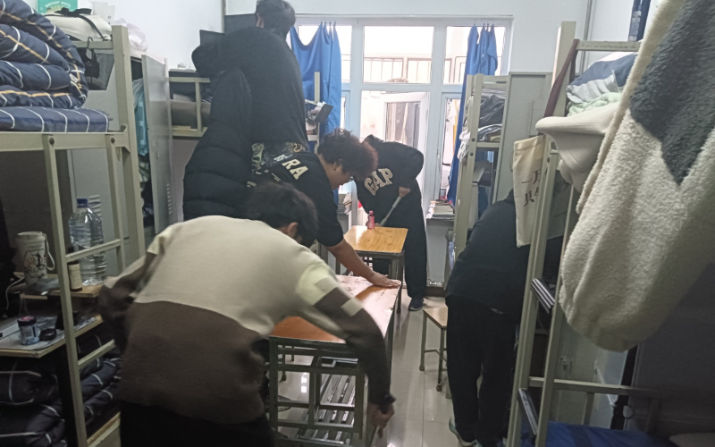 11月5日下午,在党委副书记周丹的带领下,全体辅导员及学生工作处工作人员深入学生寝室,与同学们一同开展寝室清扫劳动实践活动。活动旨在营造安全整洁、舒适健康的住宿环境,扎实推进大学生劳动教育走深走实。